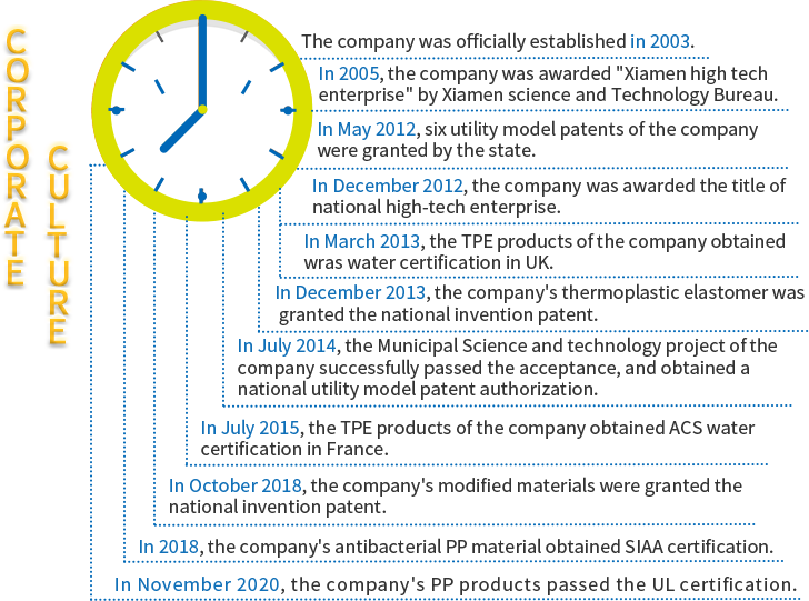 Xiamen Jiyou New Materials Co., Ltd. was established in 2003. The company's production base is located in the beautiful Xiamen Huandong Sea area. It is a new polymer material composite modification company. The company has two departments: Engineering Plastics Division and Elastomer Materials Division. unit. The company has passed the ISO9001 quality management system and 14001 environmental management system certification. The company has obtained more than a dozen patents through years of hard work and accumulation, and some of its products have passed UL flame-retardant certification and WRAS, ACS, SIAA and other certifications.